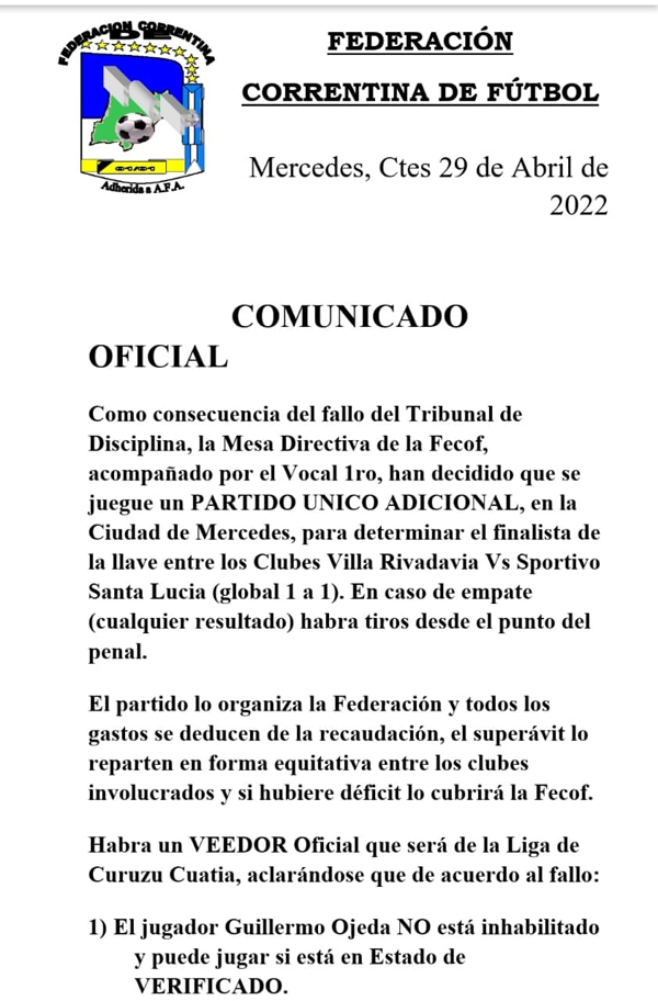 Luego del fallo del tribunal de penas, que le dio ganado a Sportivo Santa Lucía por la mala inclusión de un jugador de Villa Rivadavia, se verán las caras el próximo martes nuevamente en un encuentro definitivo.