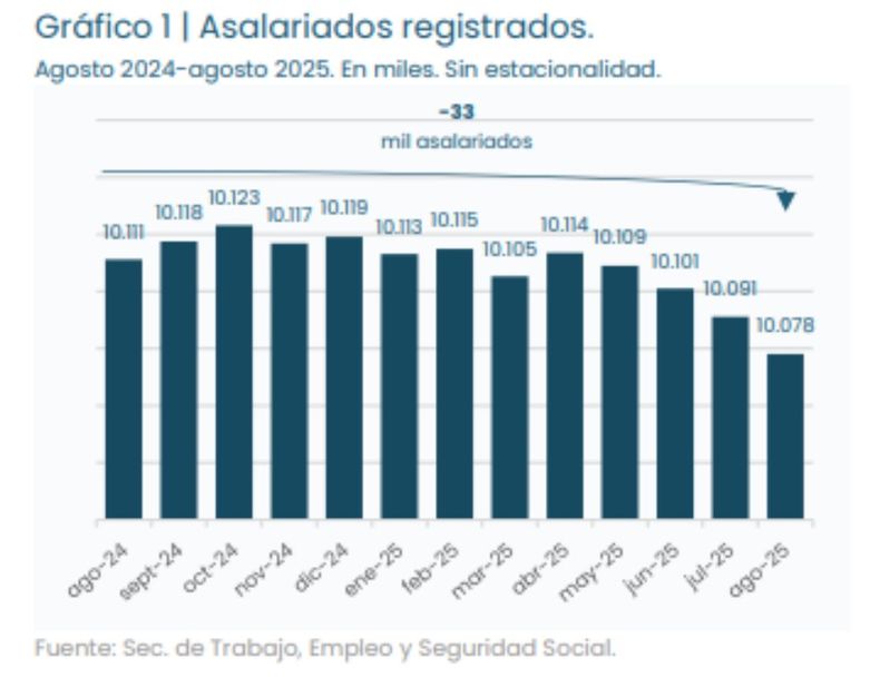Una pérdida de 33 mil puestos (-0,3%) respecto a agosto de 2024.