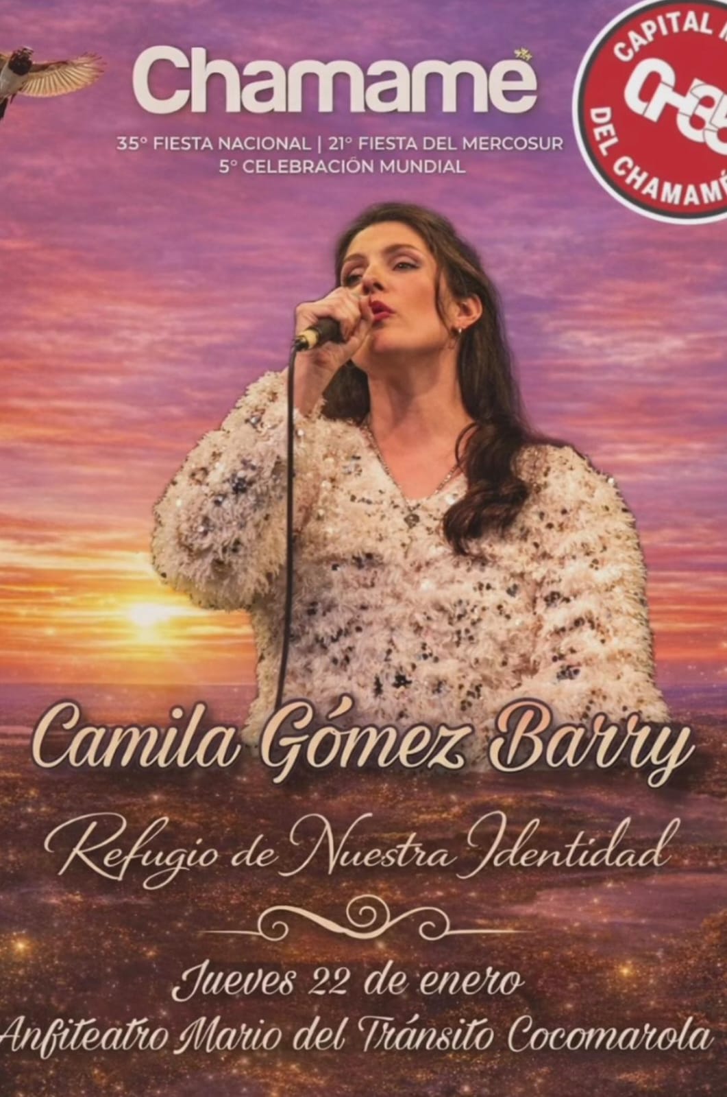 Este jueves 22 de enero, el escenario Osvaldo Sosa Cordero de la 35ª Fiesta Nacional del Chamamé vibrará con talento goyano. Camila Gómez Barry actuará junto a Diego Silva, Valentín Herlan, Cristian Chamorro y Joaquín Base. "Una noche para sentir el chamamé bien profundo" expresó la cantante.