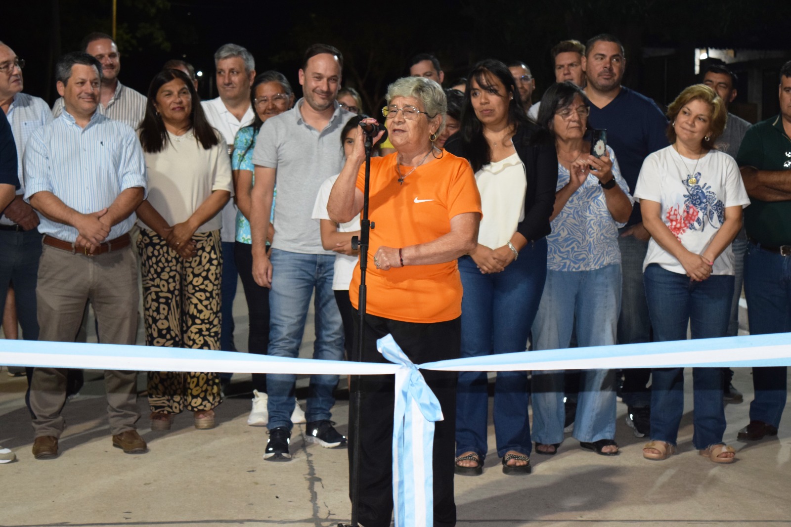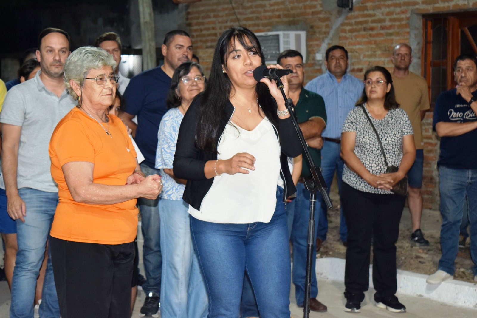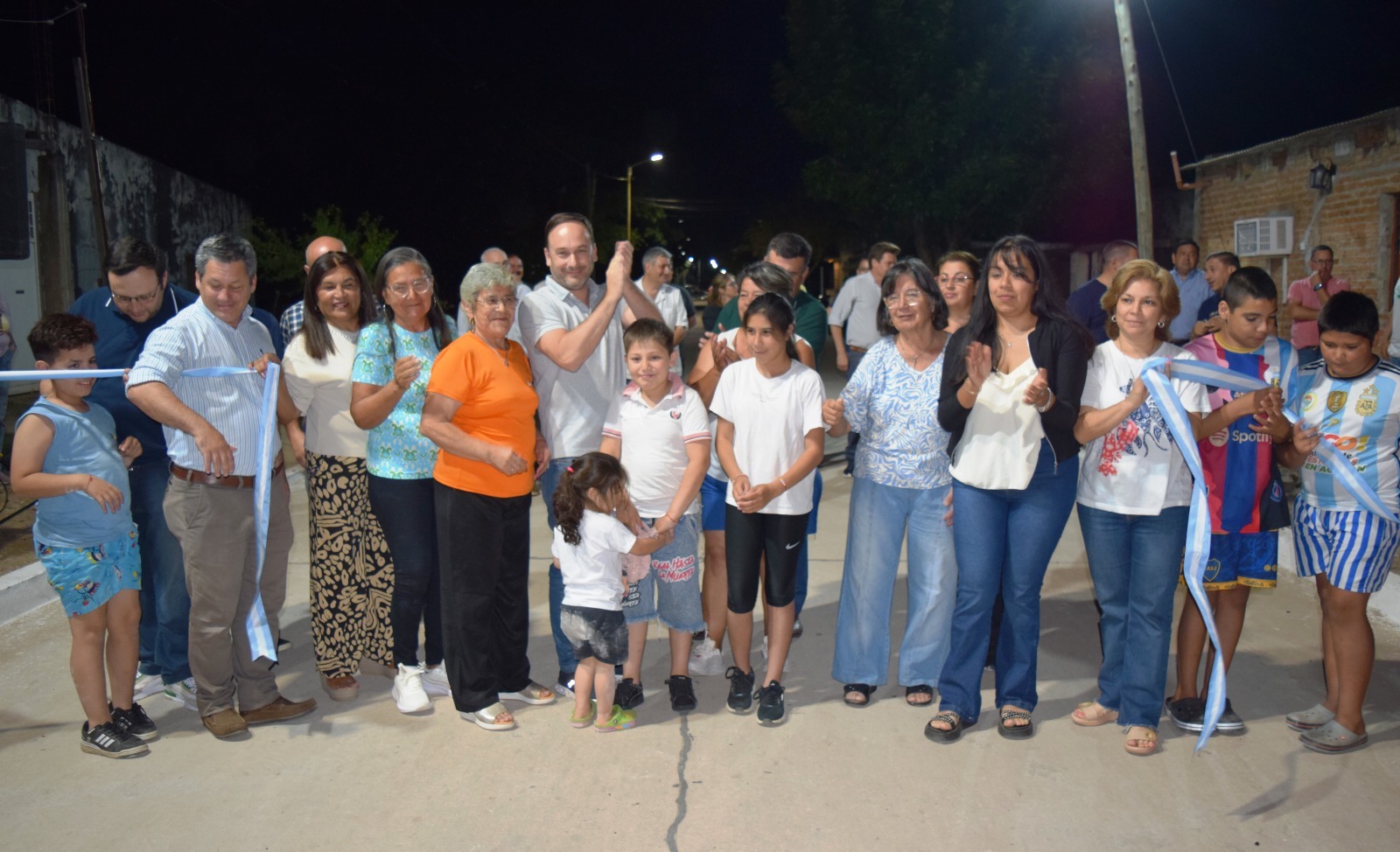 En la noche del jueves, el intendente Mariano Hormaechea presidió una nueva inauguración de cuadra de pavimento en hormigón armado, en el barrio Scófano, calle San Juan, entre Blas Luccioni y Juan XXIII.