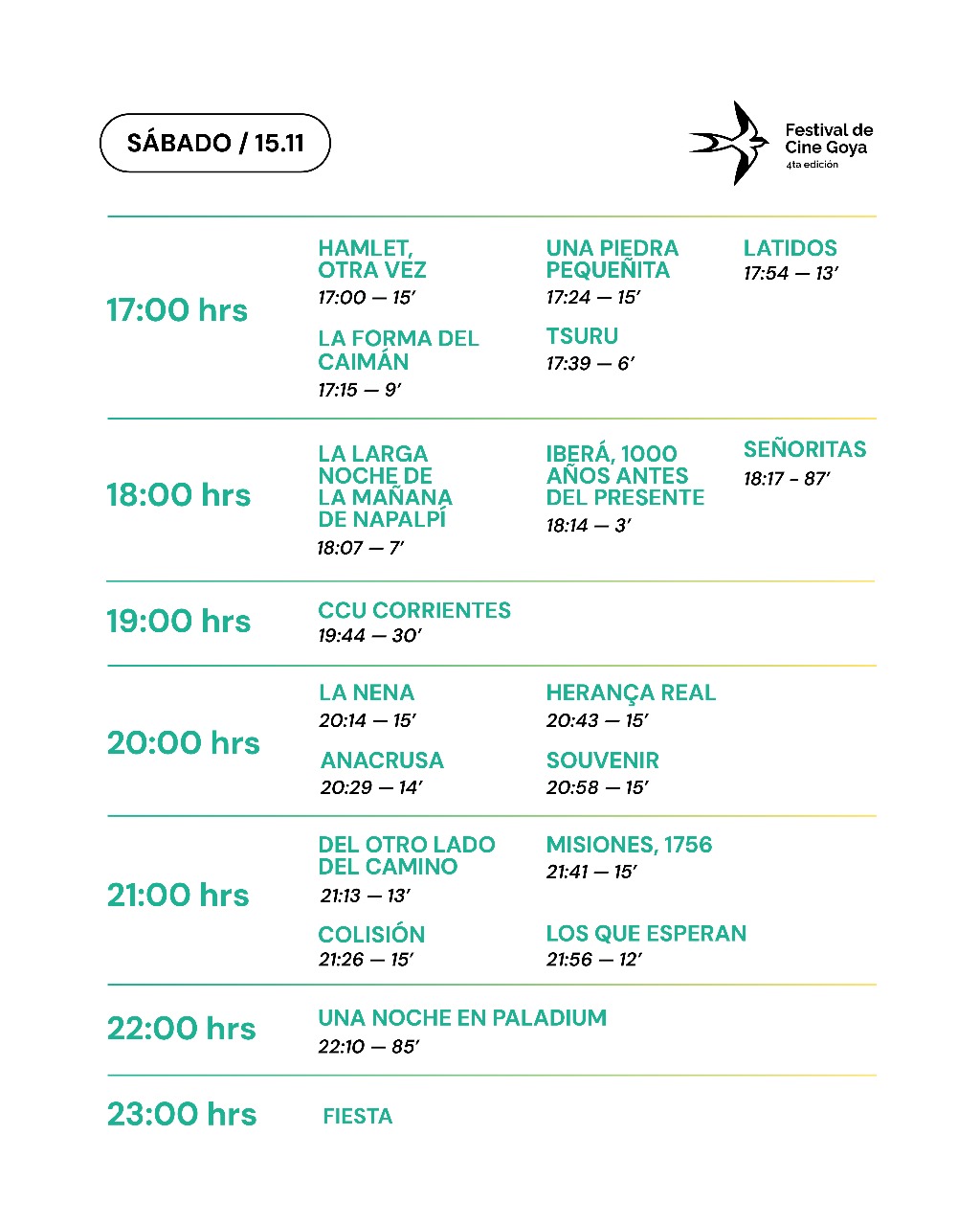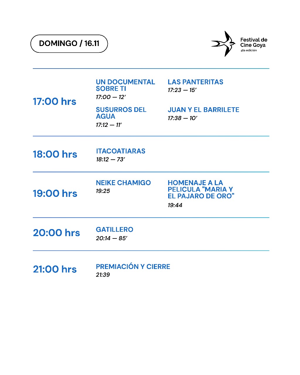 El Teatro Municipal será el escenario durante los días viernes 14, sábado 15 y domingo 16 de noviembre de las proyecciones de cortometrajes, largometrajes y documentales que forman parte de la competencia del Festival de Cine Goya. El otrora Cine Solari servirá de ámbito para que los cinéfilos tengan esta cita con las películas de realizadores del país y del extranjero en la 4ª temporada de este evento.