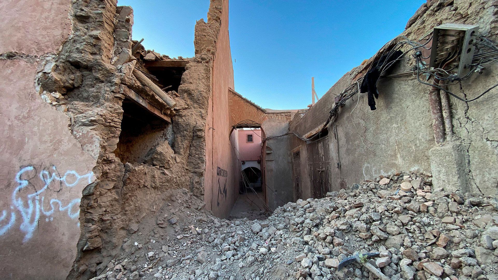 Varios edificios de la ciudad de Marrakech resultaron dañados a causa del sismo de magnitud 6,9 que tuvo lugar a 60 kilómetros de esa localidad.
