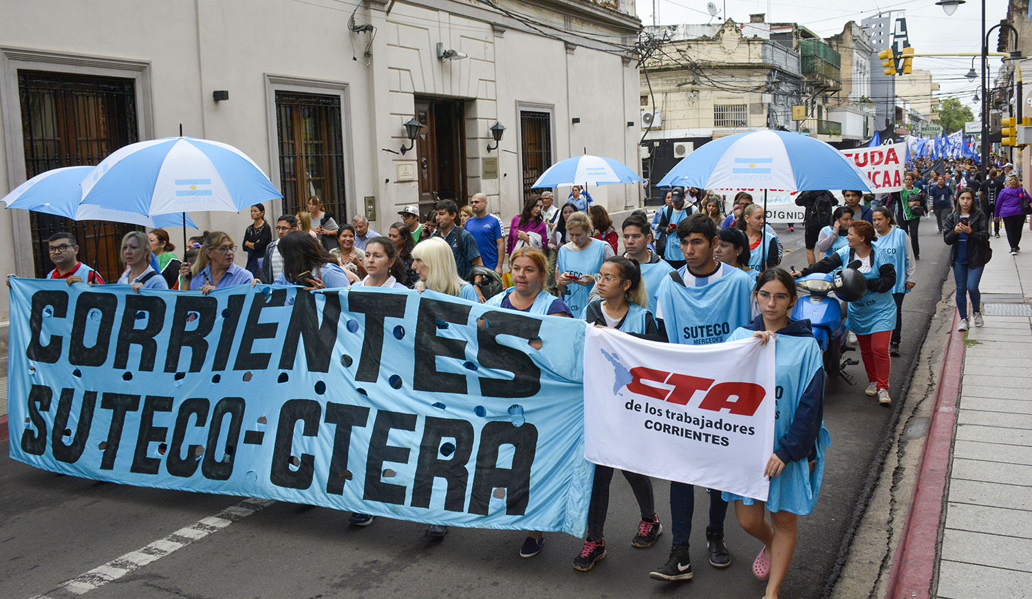 El Sindicato Único de Trabajadores de la Educación de Corrientes (SUTECO) concretó, este jueves 13 de abril, la primera jornada de huelga docente; de las 48 horas consecutivas de paro que se cumplirá también este viernes 14 de abril y clases públicas frente al Ministerio de Educación (Capital), nuevas marchas en calles y plazas de todas las ciudades de Corrientes.
