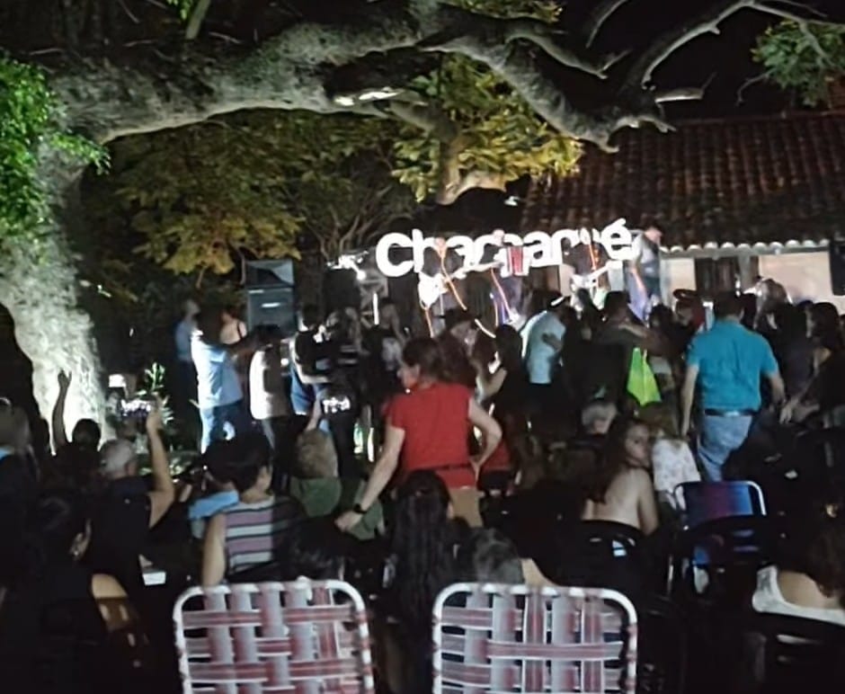Tanto el público como el escenario estaban cubiertos por un techo verde, bajo los generosos árboles del Museo de Ciencias Naturales. Había en distintas rondas mates y otras bebidas. Soplaba una brisa suave, tanto como una melodía de sueños. La música comenzó con El Gringo Agustín Acuña, luego siguieron Los Vecinos con quienes el público ya dio rienda suelta al baile y al sapukái. La fiesta y la noche tuvieron su momento más celebrado con la presentación de Vicky Sánchez.
