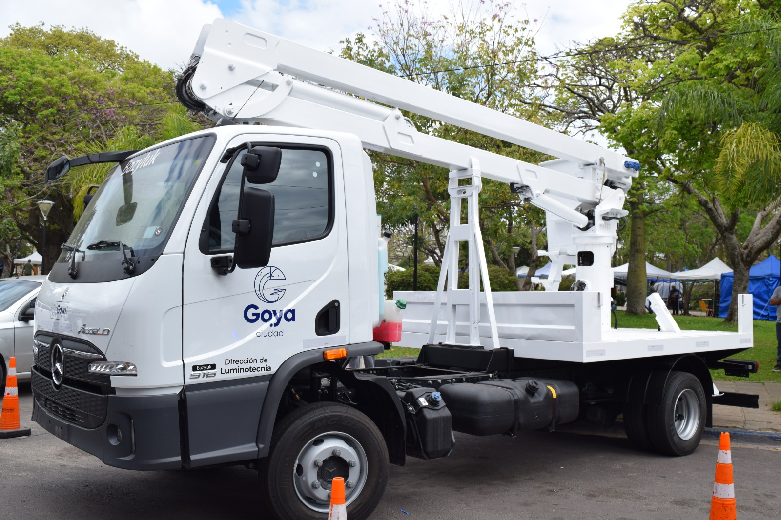 En la mañana del viernes 3 de octubre, en la Plaza Mitre, se realizó la presentación de un nuevo vehículo con equipamiento destinado al área de Luminotecnia de la Municipalidad de Goya. Se trata de una hidrogrúa con un alcance de 9 metros, que se sumará a la flota municipal para reforzar el servicio en la ciudad.