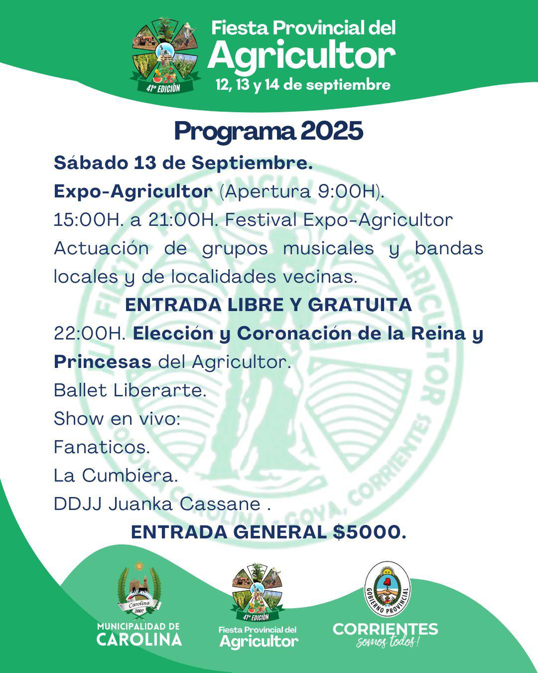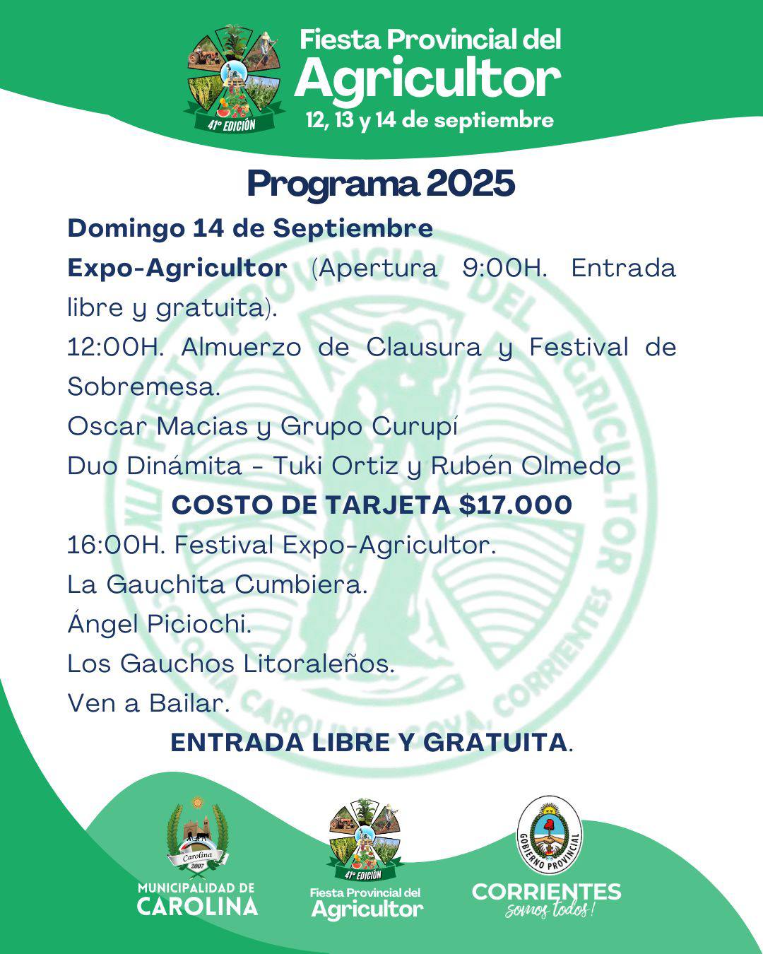 Del 12 al 14 de septiembre, Carolina se viste de fiesta con festivales llenos de música y baile, la esperada elección y coronación de la Reina, y un almuerzo de clausura que cerrará este gran encuentro en honor al trabajo y la cultura del campo.