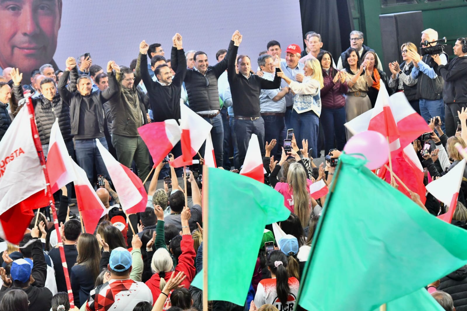Mariano Hormaechea, quien va por su reelección, Sebastián “Chubi” Mazzaro candidato a Viceintendente, el Gobernador Gustavo Valdés y el candidato a Gobernador Juan pablo Valdés, ante un estadio colmado aseguraron el triunfo para el domingo 31 en Goya y toda la provincia, afirmando que la victoria se sostiene “por el apoyo, el respaldo, la fuerza de la gente, de los ciudadanos porque así trabajamos juntos, hacia adelante”