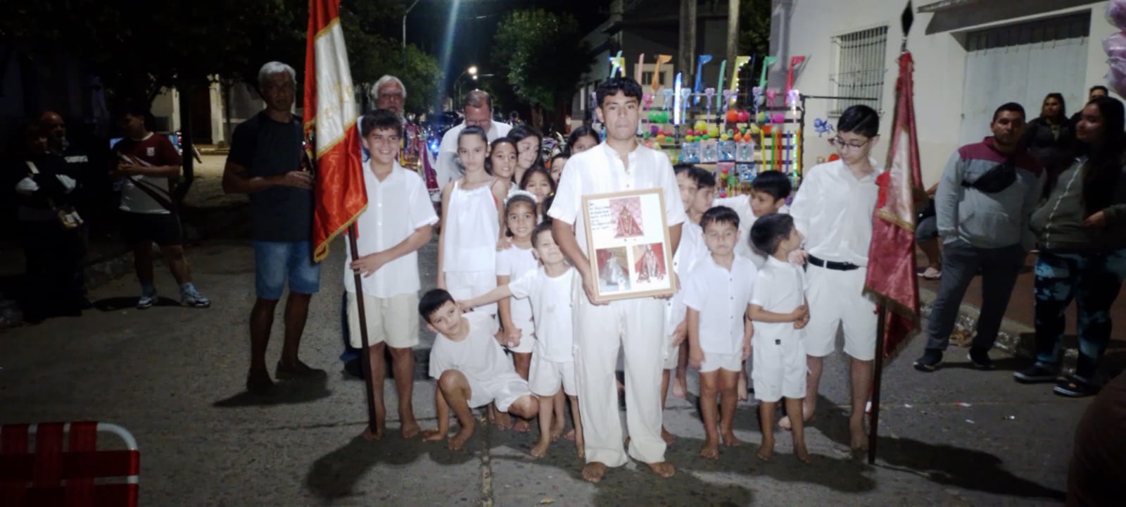 En el momento que el reloj marcaba la hora cero se vivió ese instante de enorme emotividad, la salida de la imagen de san Baltasar, con un acompañamiento coreográfico de la Escuela Municipal de Danzas Nativas “El Trovador”, en su categoría infantil, recreando con la danza la presencia de los promeseros devotos, que con imágenes y banderas acompañaron la salida del referido icono junto a la familia Piriz, el director de Cultura Manuel Zampar y el público que se sumó al tradicional festejo.