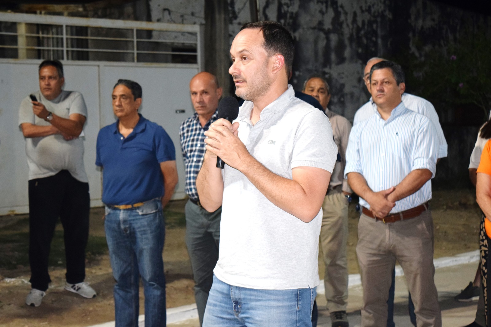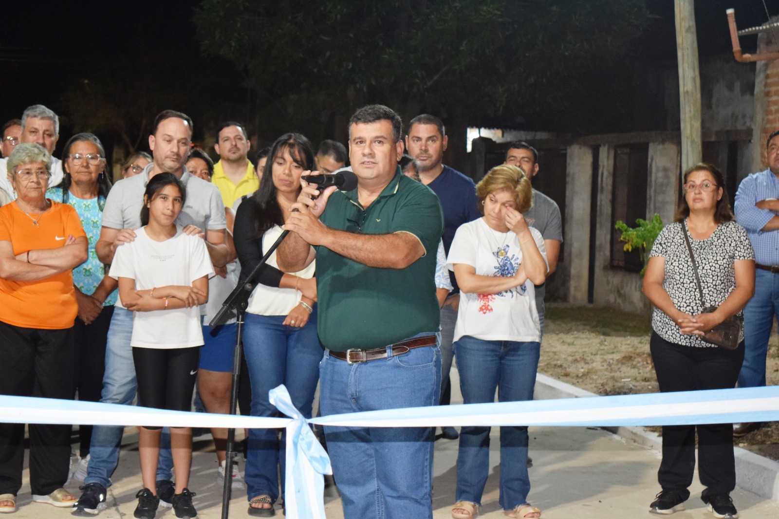 En la noche del jueves, el intendente Mariano Hormaechea presidió una nueva inauguración de cuadra de pavimento en hormigón armado, en el barrio Scófano, calle San Juan, entre Blas Luccioni y Juan XXIII.