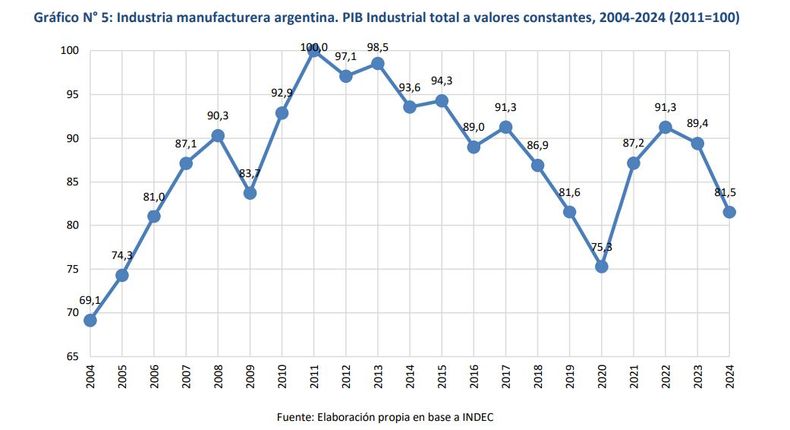 La industria argentina atraviesa uno de los momentos más delicados de su historia: entre 2023 y 2025, el país consolidó un proceso de desindustrialización acelerada, donde la actividad manufacturera sufrió en 2024 una caída del 8,8%, superando incluso los peores registros de la pandemia y la crisis de 2009.