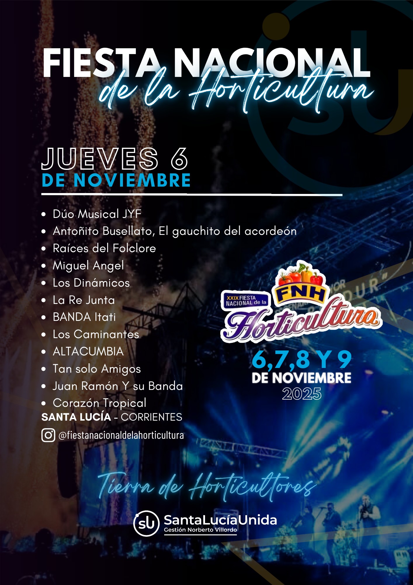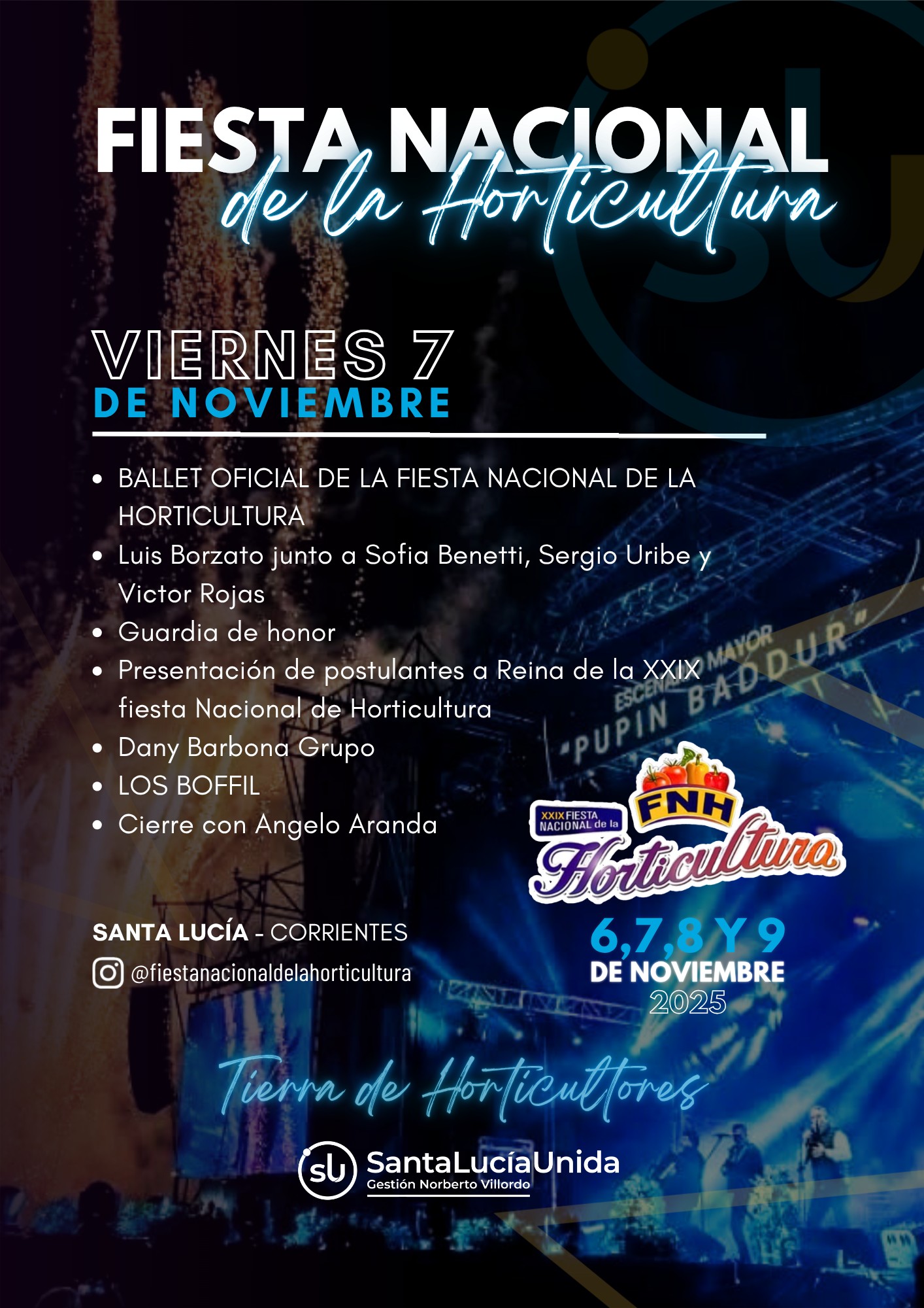 Del 6 al 9 de noviembre, Santa Lucía se llena de música, cultura y homenaje a la producción hortícola y sus trabajadores. Te compartimos el cronograma completo con los grandes artistas que acompañarán esta gran celebración hasta el domingo. Mírá los valores de las entradas.